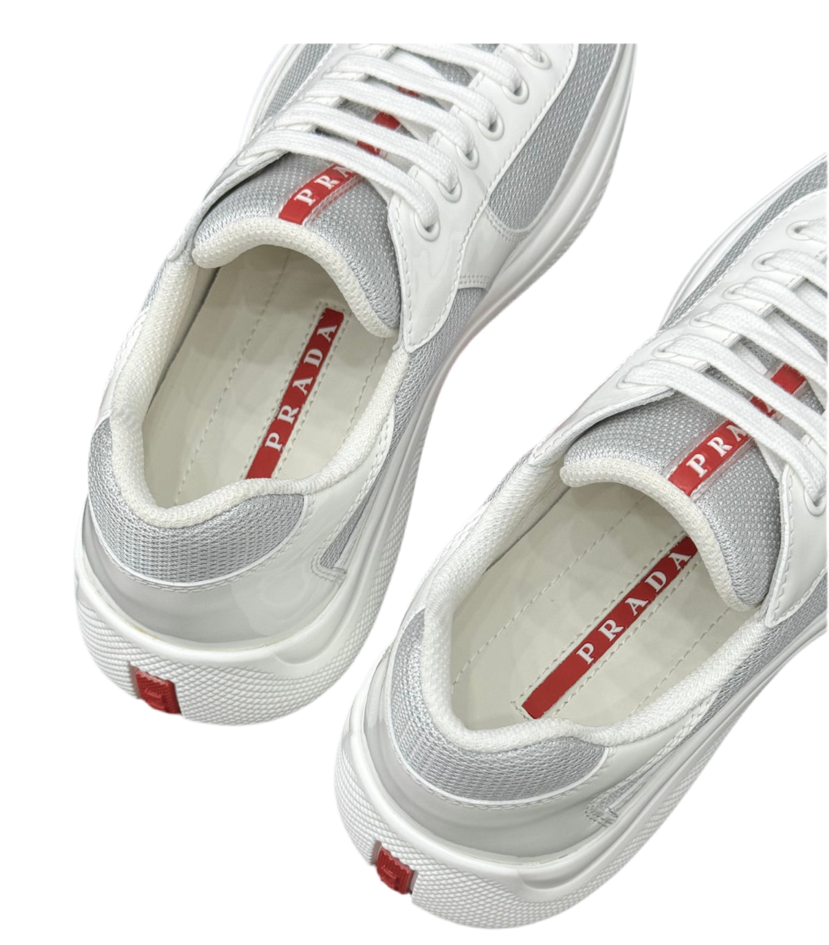 Ces sneakers en cuir verni avec des empiècements en tissu Bike s’inspirent d’une esthétique emblématique. Elles sont ornées du logo Prada Linea Rossa unique sur la languette et la semelle.